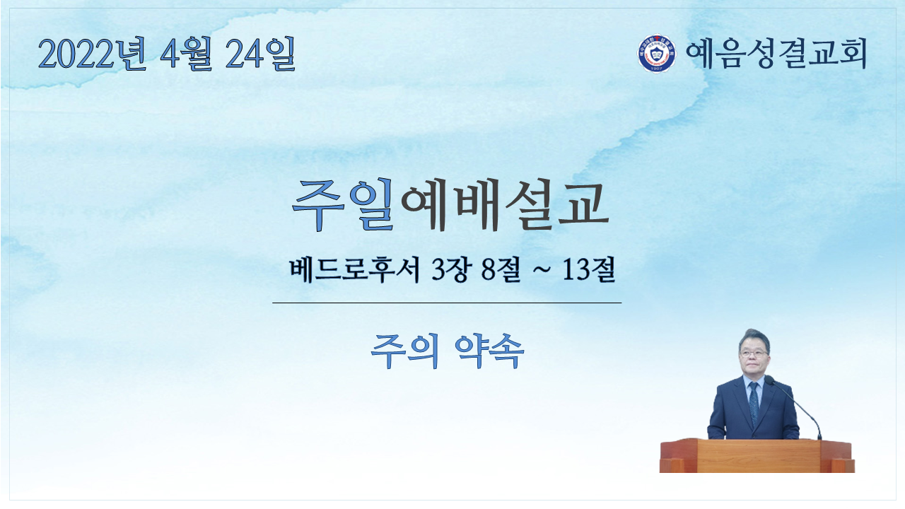 예수님께서도 친히 제자들에게 재림에 관해서 말씀하셨습니다(마 24:30 ; 요 14:3). 사실 재림에 대한 약속은 이미 구약에서 예언된 바 있습니다(단 7:13). 그런데 예수님의 약속이 있은 지 2000년이 다 되어 가지만 아직 그 약속은 이루어지지 않았습니다. 그래서 사람들 중에는 주의 재림이 없다거나 ‘그리스도가 다시 오신다는 약속은 어떻게 되었느냐’고 조롱하기도 합니다. 또 재림에 대한 약속이 더디 이루어진다고 생각하는 사람들도 있습니다(벧후 3:4). 이에 대해 베드로는 그들이 생각하는 것 같이 주님께서는 자기의 약속을 더디 지키시는 것이 아니라 오래 참으시는 것이라고 말합니다. 왜냐하면 주님은 아무도 멸망하지 않고 모두 회개하기를 원하고 계시기 때문입니다(벧후 3:9). 바울 역시 '하나님은 모든 사람이 구원을 받으며 진리를 아는 데에 이르기를 원하신다.'라고 했습니다(딤전 2:4).