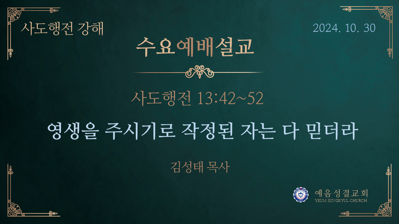 바울과 바나바의 말을 들은 이방인들은 기뻐하며 하나님의 말씀을 찬양했습니다. 그리고 영생을 주시기로 작정된 자는 다 믿었다고 했습니다(행 13:48). ‘영생을 주시기로 작정되었다'라는 말은 '영생을 얻도록 정하셨다' 또는 '영원한 생명에 이르도록 정하셨다'는 뜻으로 '하나님께서 예수 그리스도를 믿는 자에게 영생을 주시기로 작성하셨다'는 의미입니다(요 3:16). 반면에 예수 그리스도를 믿지 않는 자에게는 사망 곧 영원한 멸망의 형벌을 내리시기로 정하셨습니다(살후 1:9). 바울과 바나바는 하나님의 말씀을 거부한 유대인들을 '영생을 얻기에 합당하지 않은 자들'로 규정했습니다. 그렇다면 반대로 하나님의 말씀을 받아들인 자들은 '영생을 얻기에 합당한 자들'이 됩니다. 영생 곧 구원은 복음을 믿는 자들에게 주시는 하나님의 선물입니다(엡 2:8). 따라서 유대인이든 이방인이든 예수 그리스도를 믿으면 구원을 얻고, 믿지 않으면 정죄를 받게 되는 것입니다.