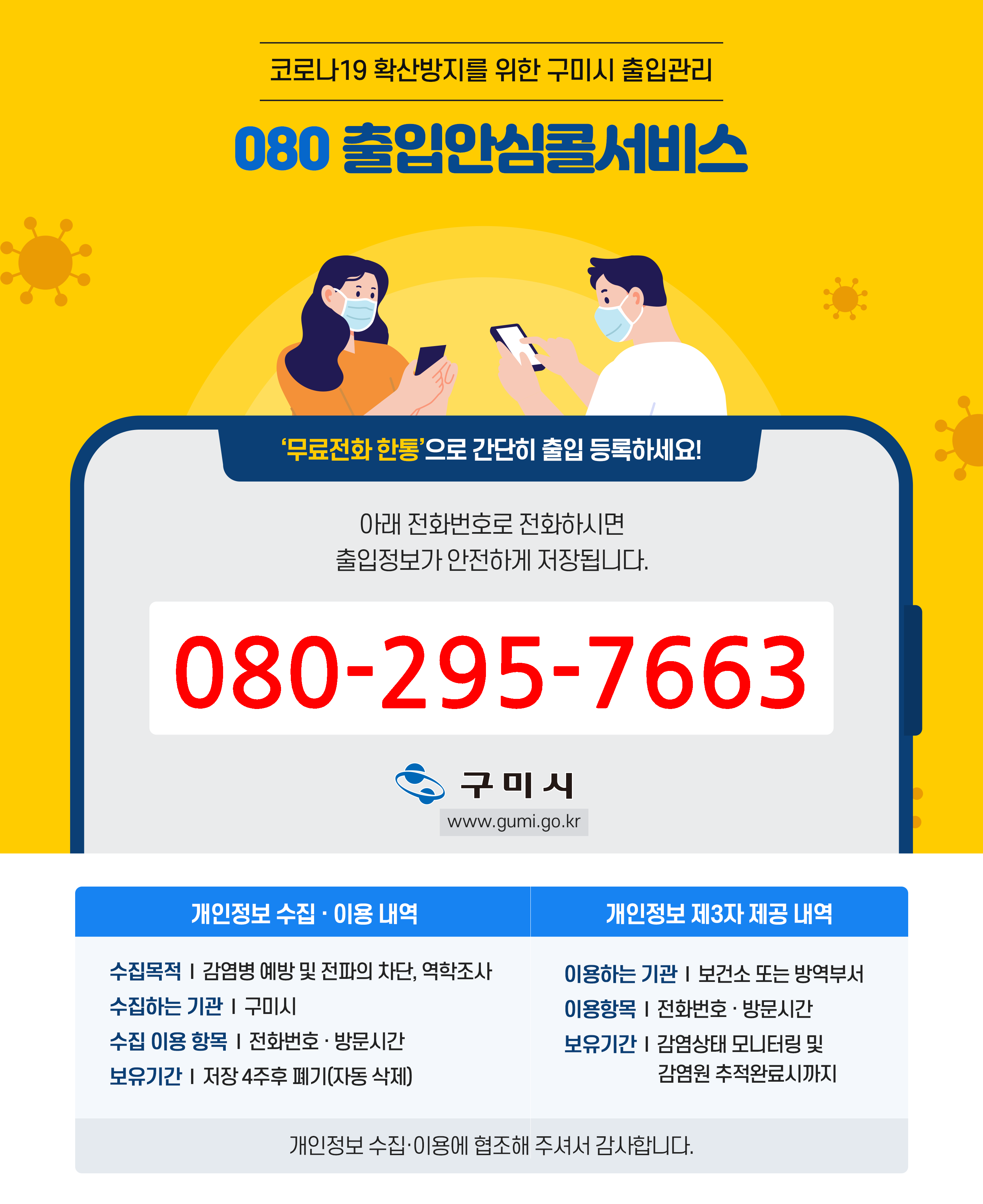 이제 무료전화 한통으로 간단히 출입 등록하세요.