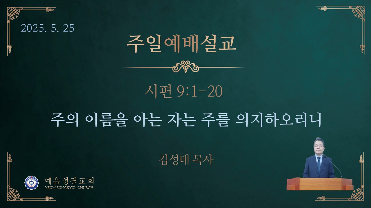 사랑하는 성도 여러분! 다윗은 자신을 대적들로부터 구원해 주시고 승리를 주신 하나님께 감사하며 그분을 찬양했습니다. 하지만 원수들의 위협은 여전히 계속되었습니다. 이에 다윗은 여느 때와 마찬가지로 하나님께 호소합니다. “여호와여 내게 은혜를 베푸소서 나를 사망의 문에서 일으키시는 주여, 나를 미워하는 자에게서 받는 나의 고통을 보소서”(시 9:13). ‘사망의 문에서 일으키시는 주’라는 표현은, 하나님께서 자신을 죽음의 위기에서 구원해 주시는 분, 곧 생명의 주인이심을 고백한 것입니다. 또 다윗은 하나님께 ‘일어나소서’라는 명령형을 사용하여, 인생으로 승리를 얻지 못하게 하시며 이방 나라들이 주 앞에서 심판을 받게 해 주시기를 간절히 호소했습니다(시 9:19). 하나님의 백성을 억압하는 악한 자들이나 이방 민족이 더 이상 활개 치지 못하도록 그들을 하나님의 공의로운 심판 앞에 세워달라는 기도입니다. 이는 단순히 원수를 갚아달라는 것이 아니라, 하나님의 공의가 온전히 실현되기를 바라는 신앙의 간구입니다. 그를 통하여 악한 자들이나 이방 나라들은 자신이 한낱 연약한 인간에 지나지 않는다는 걸 깨닫게 될 것입니다(시 9:20).