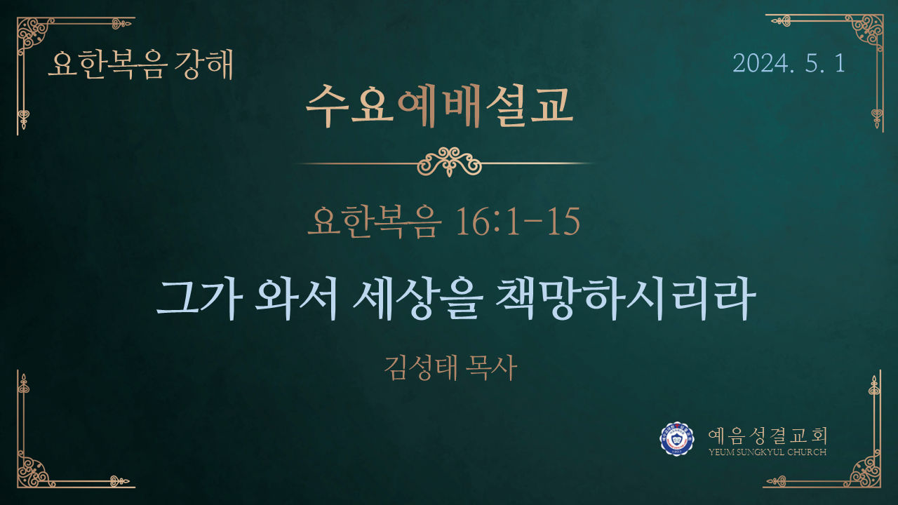 예수님께서는 보혜사 성령께서 오시면 “죄에 대하여, 의에 대하여, 심판에 대하여 세상을 책망하실 것이라”고 하셨습니다(요 16:8). 죄와 의와 심판에 관한 세상의 잘못된 생각을 꾸짖고 바로잡아 주실 것이라는 말씀입니다. 이에 대해 좀 더 구체적으로 살펴보겠습니다.